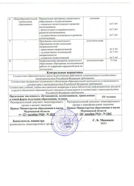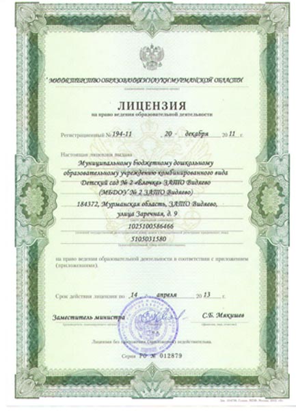 Лицензия на право ведения образовательной деятельности с приложением № 1